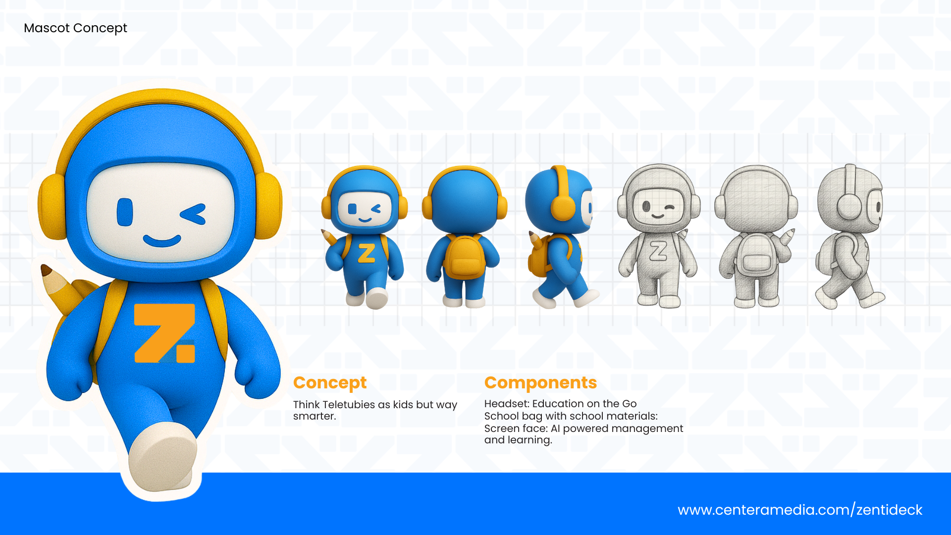 Build brand guide and mascot for Zenti an AI powered school management software.